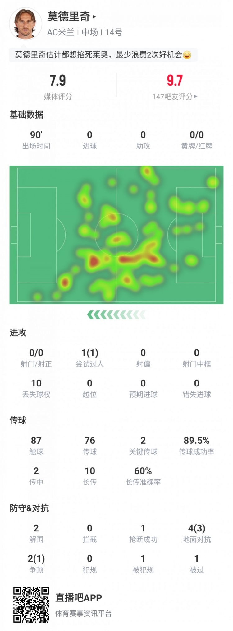 Milan đã rút 0-0 với Juventus, Modric bắt đầu cho Milan. Sau đây là dữ liệu cá nhân của anh ấy